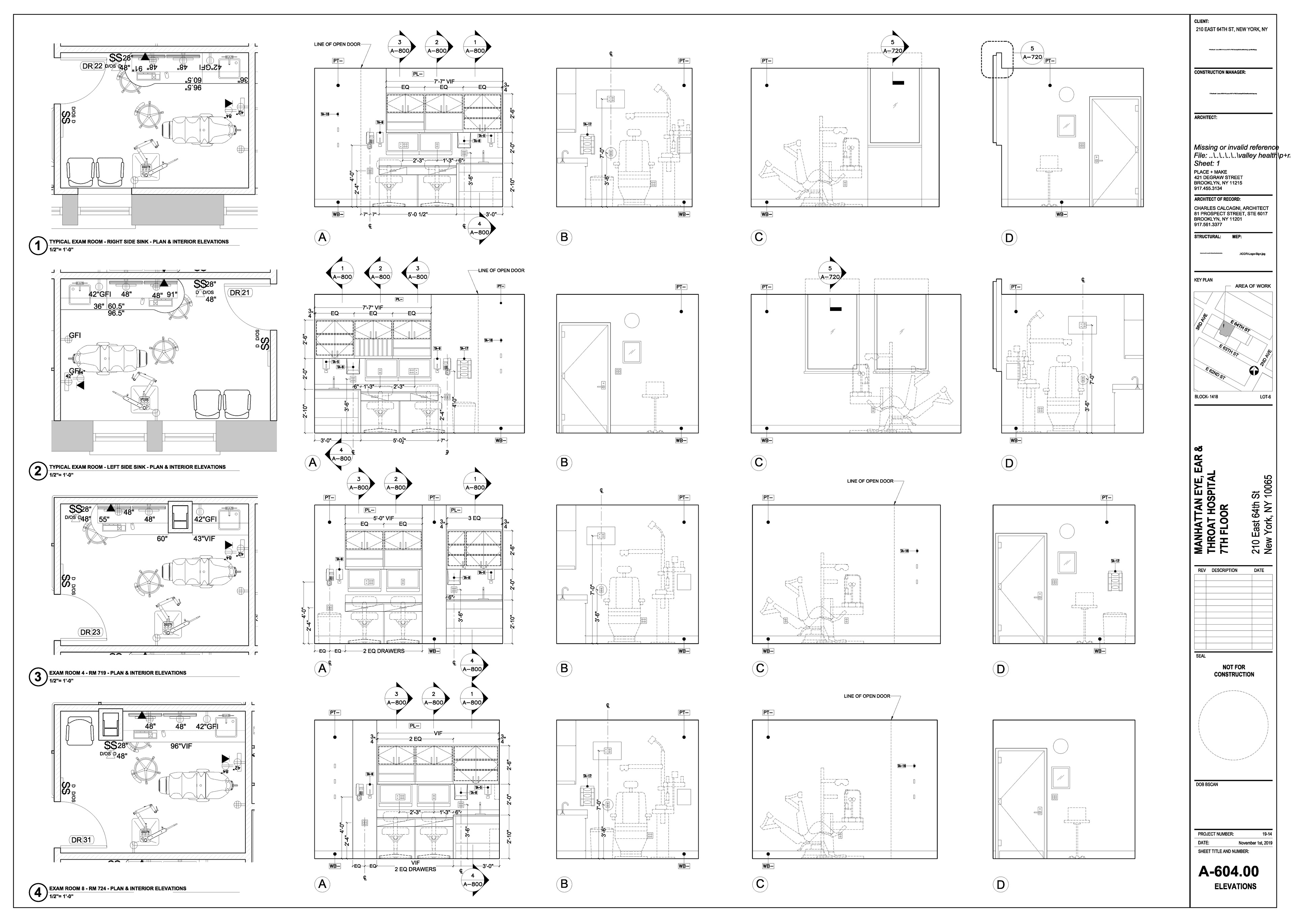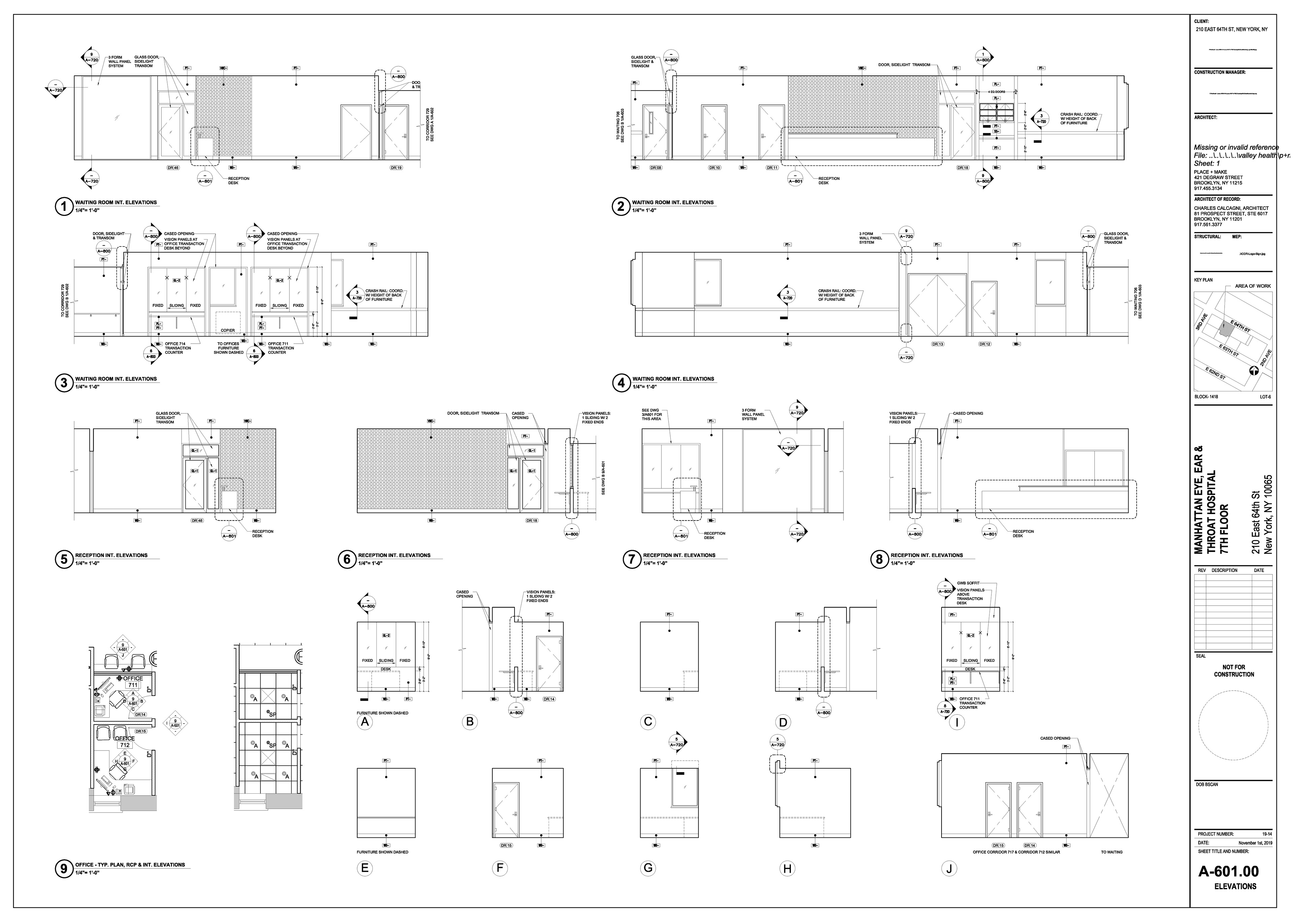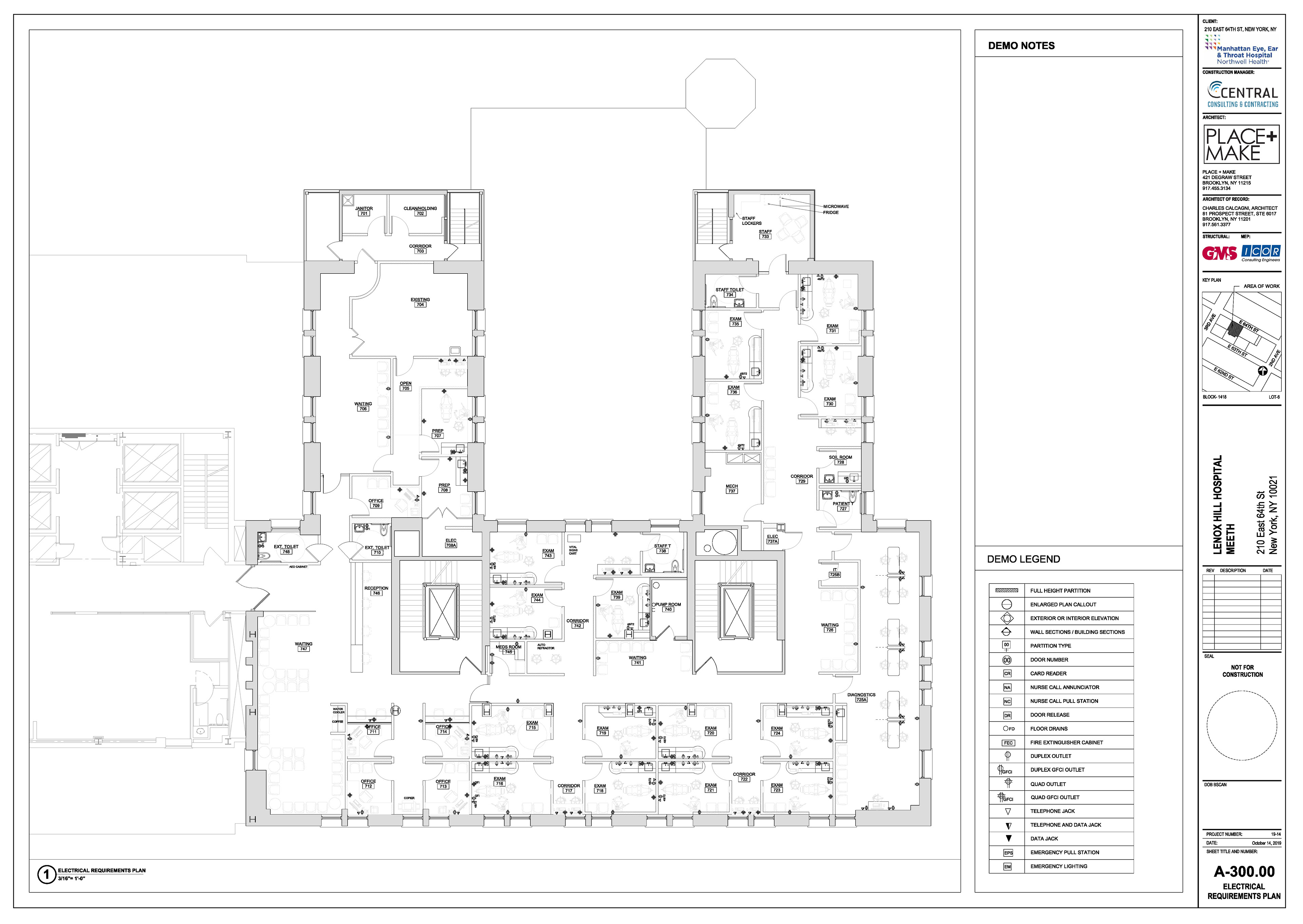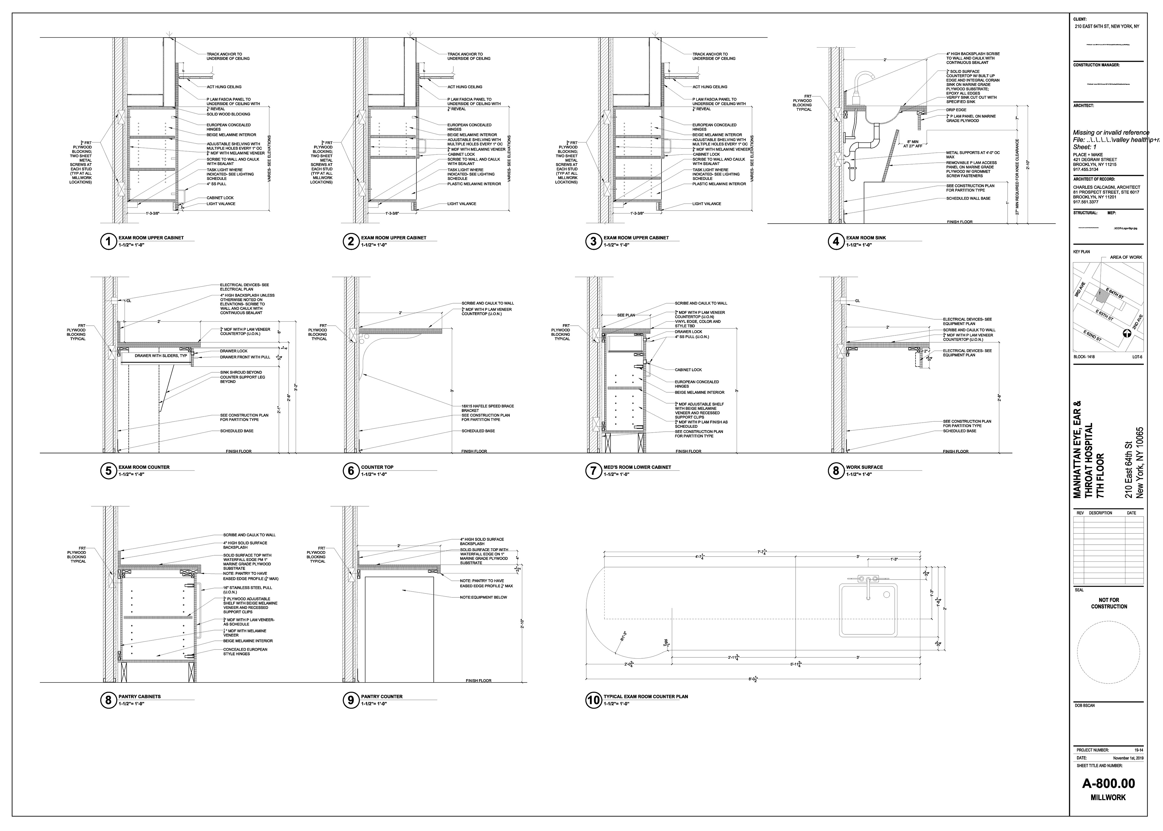 Manhattan Eye Ear and Throat facility in Manhattan. Scope of work included surveying, permit filing set, construction set, mill-work drawings, equipment coordination.