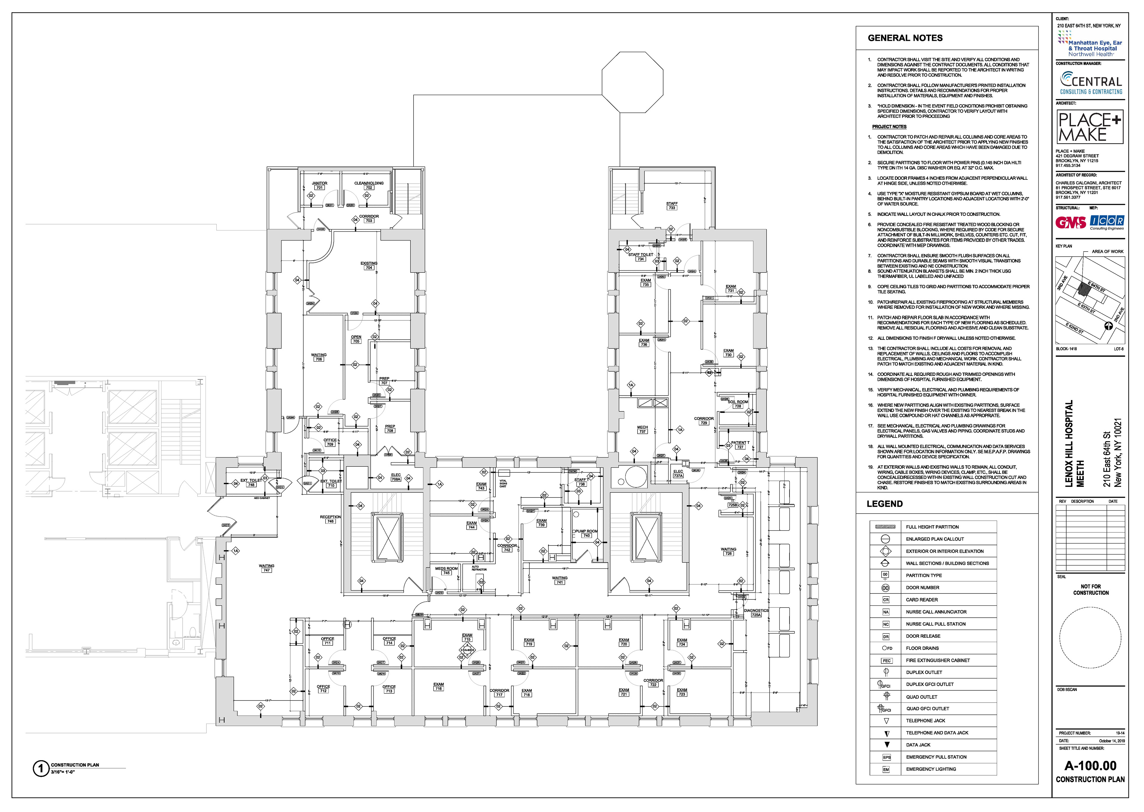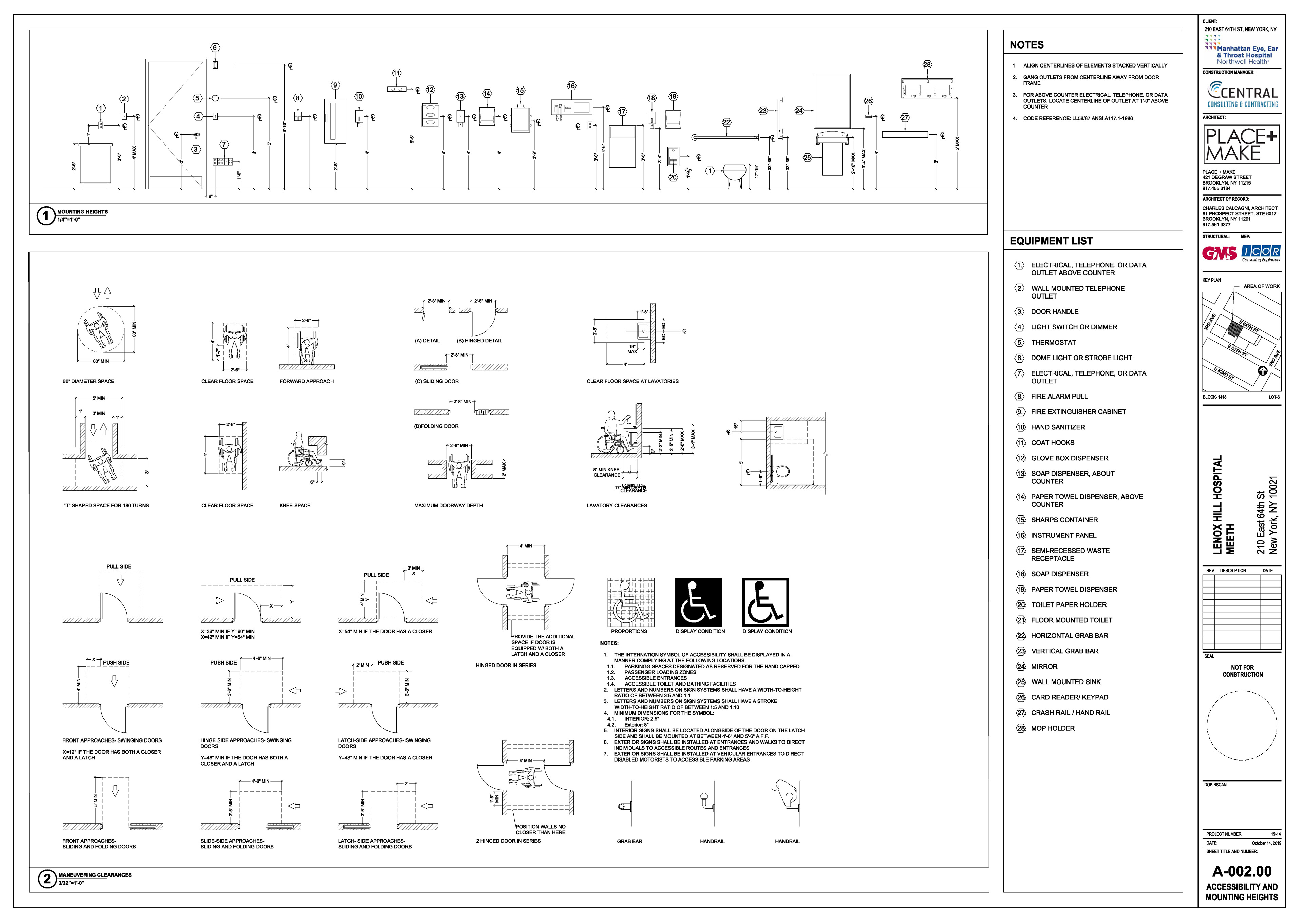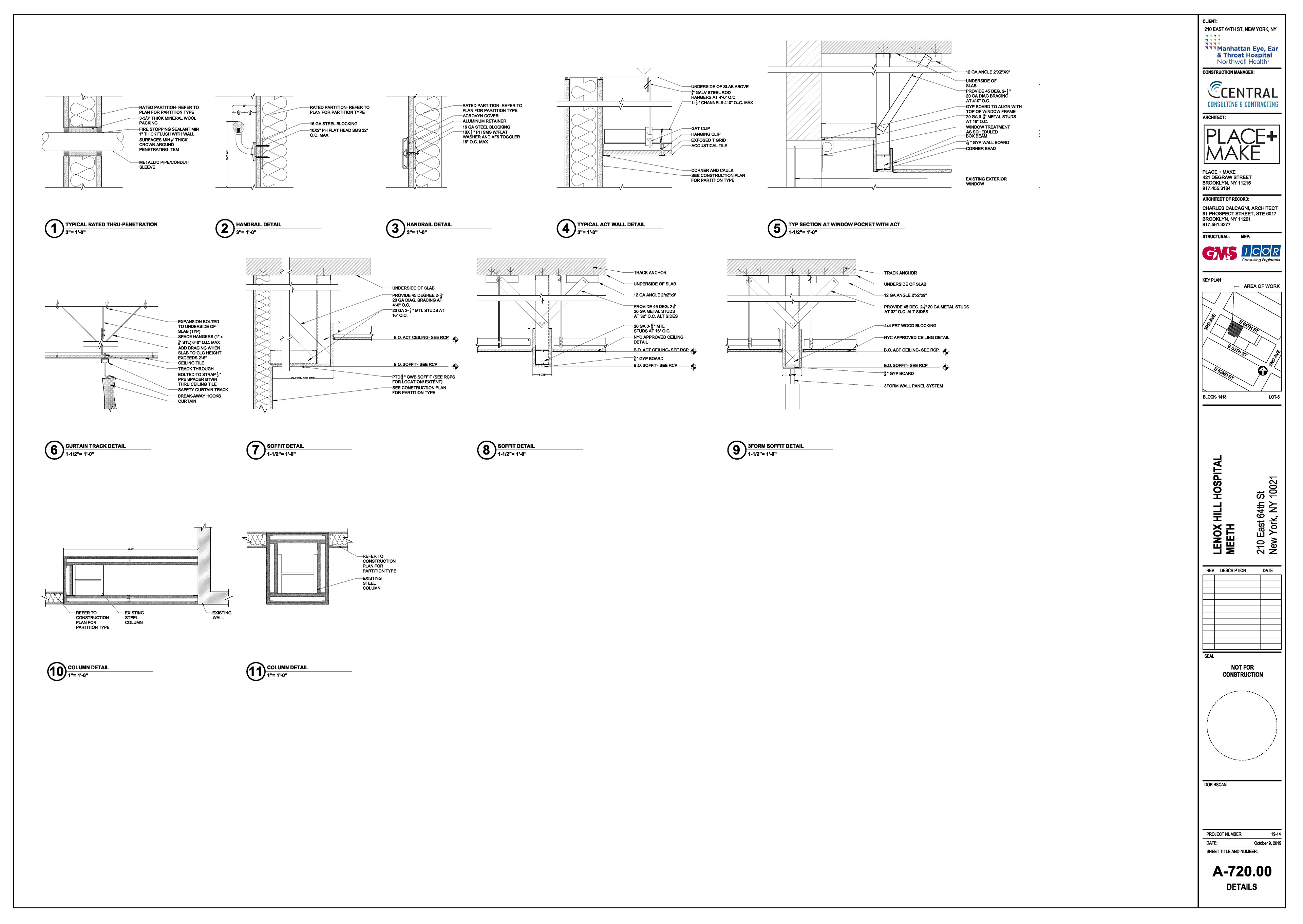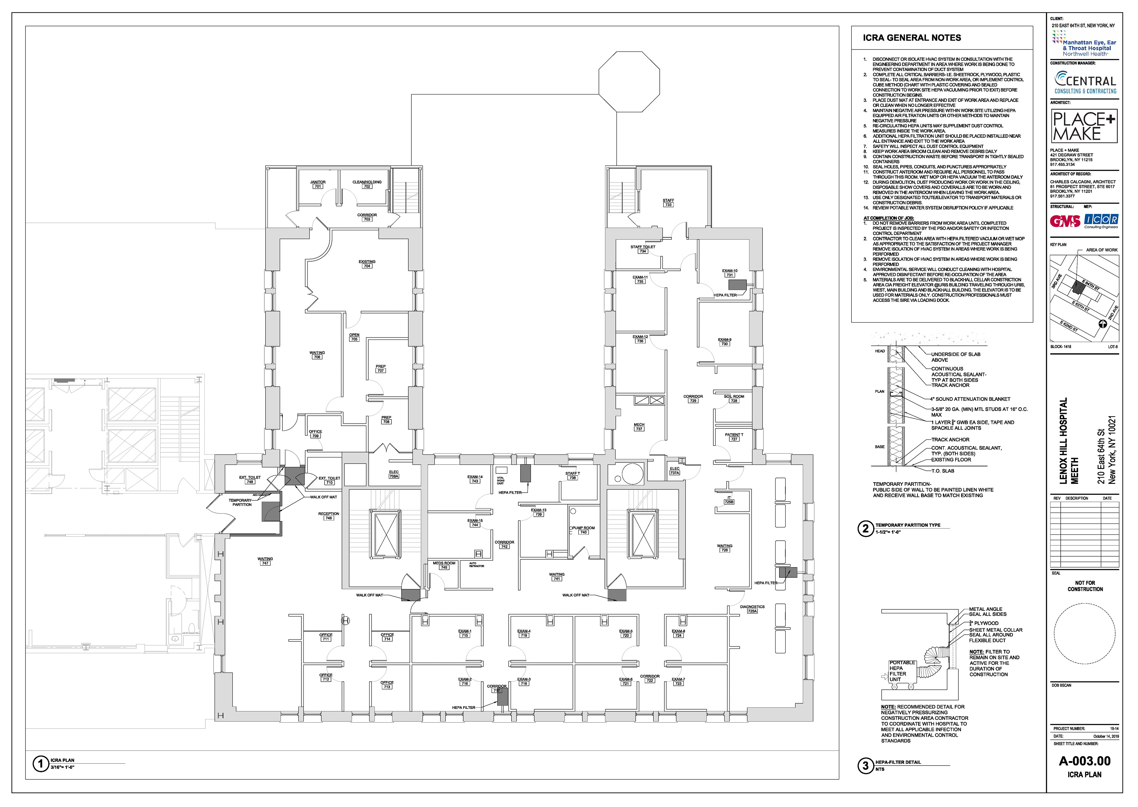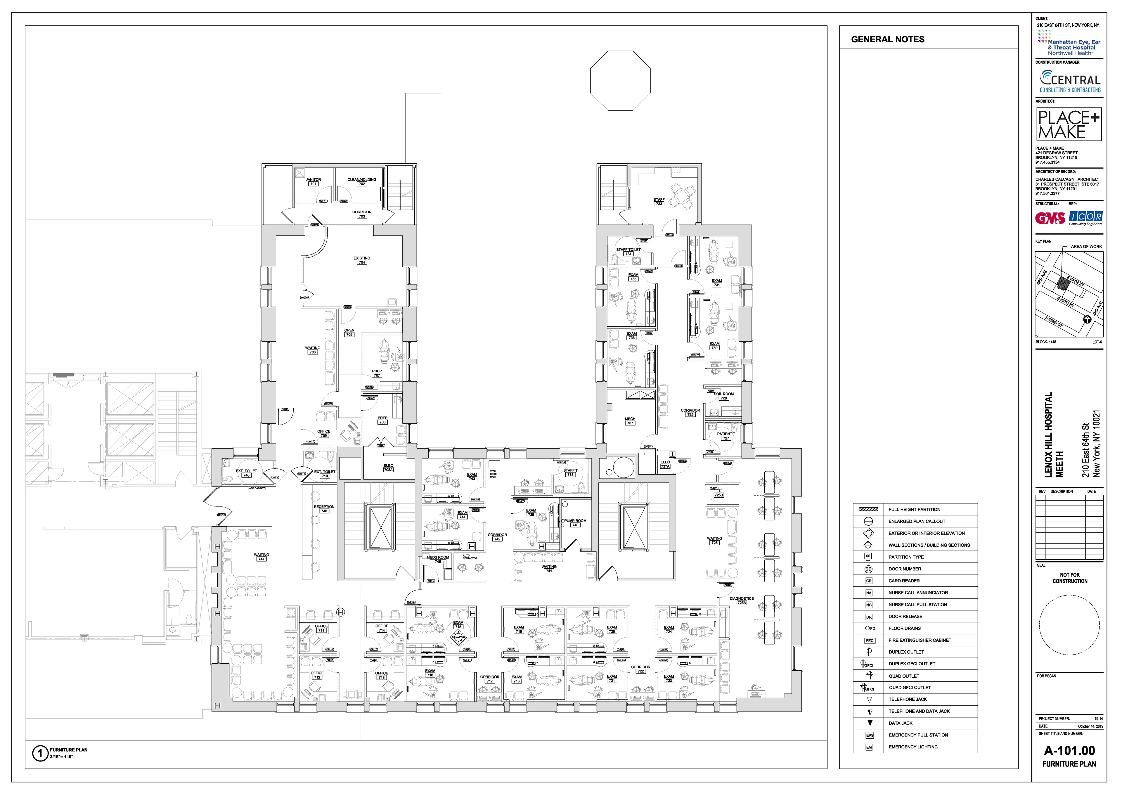 Manhattan Eye Ear and Throat facility in Manhattan. Scope of work included surveying, permit filing set, construction set, mill-work drawings, equipment coordination.