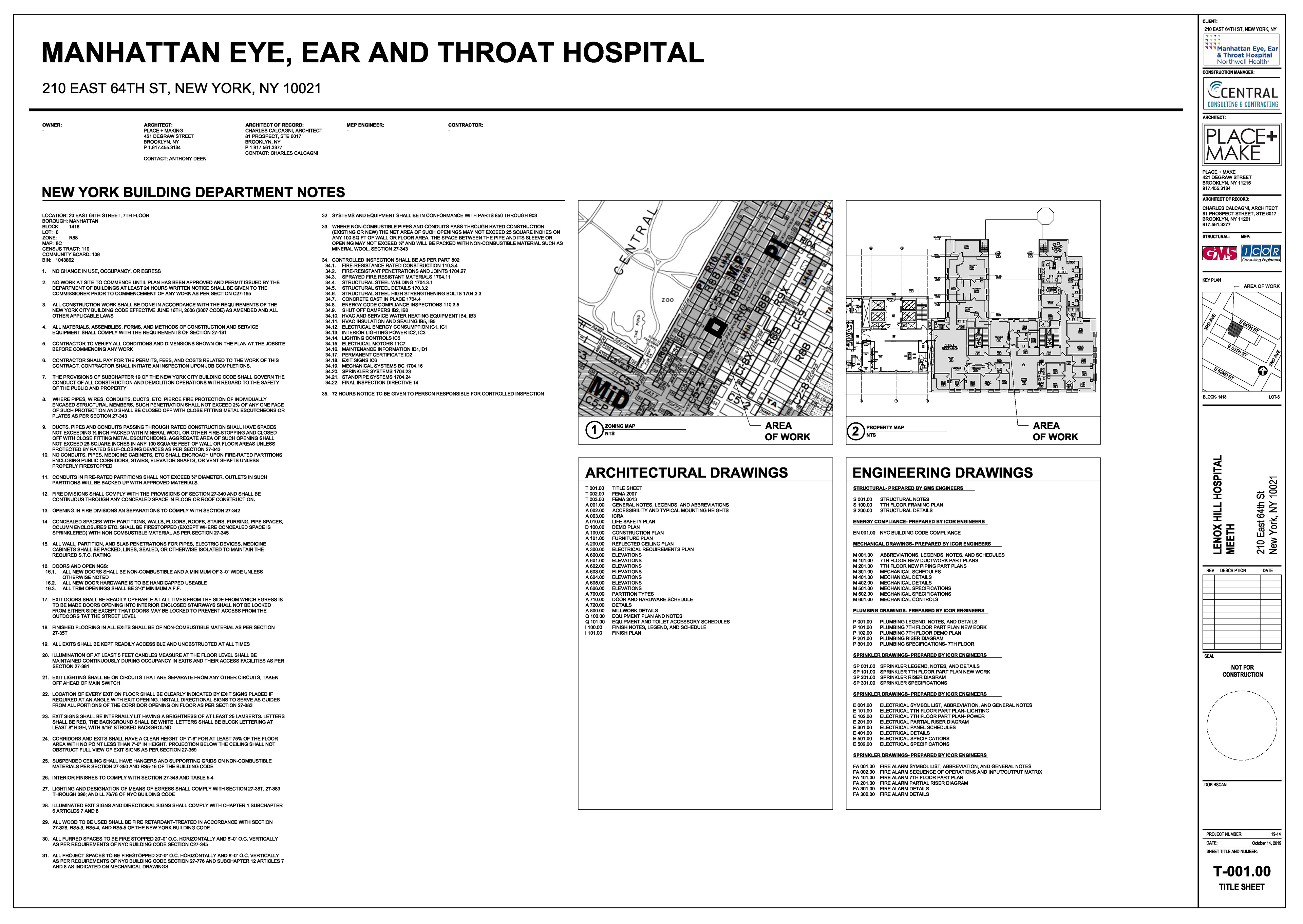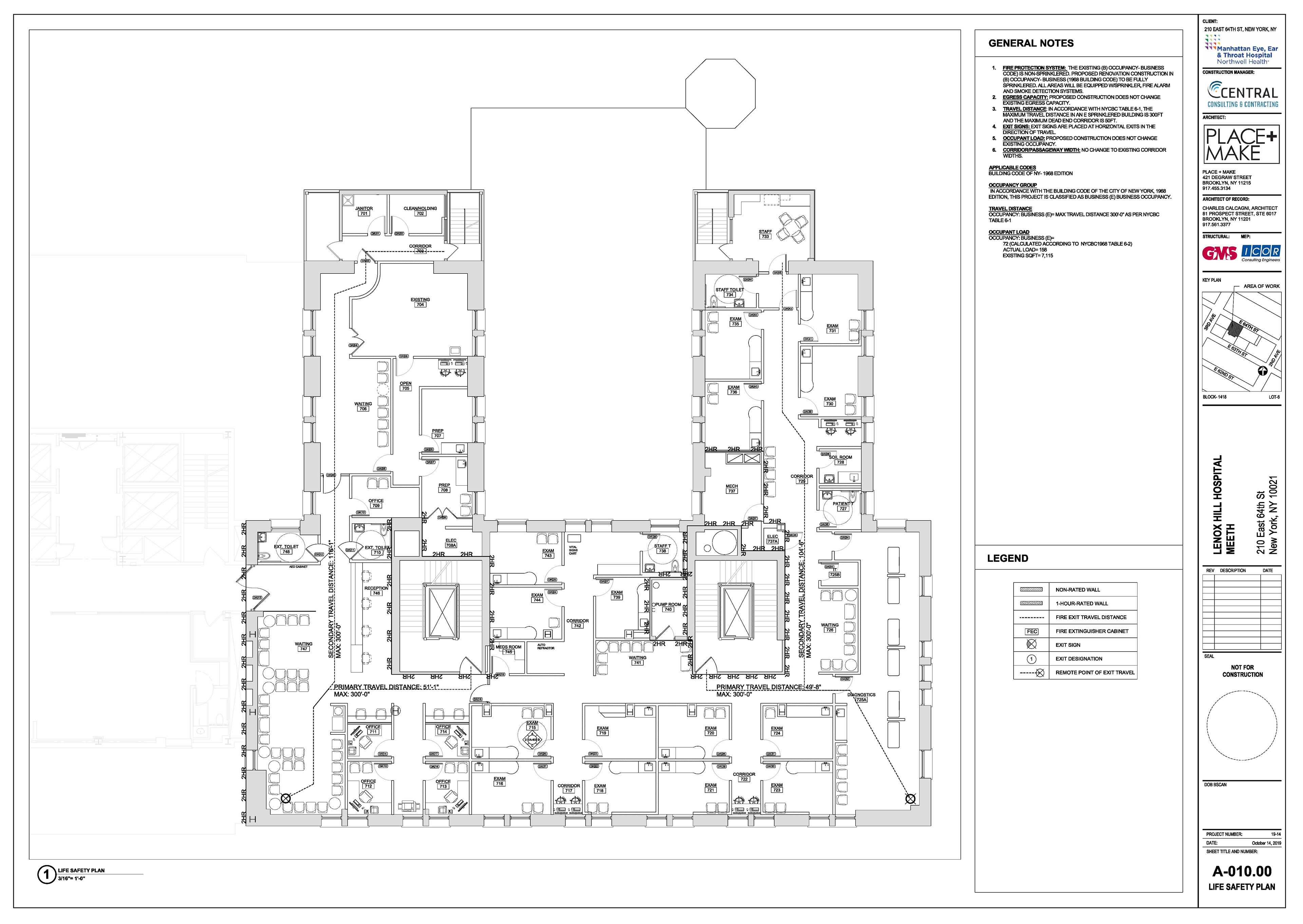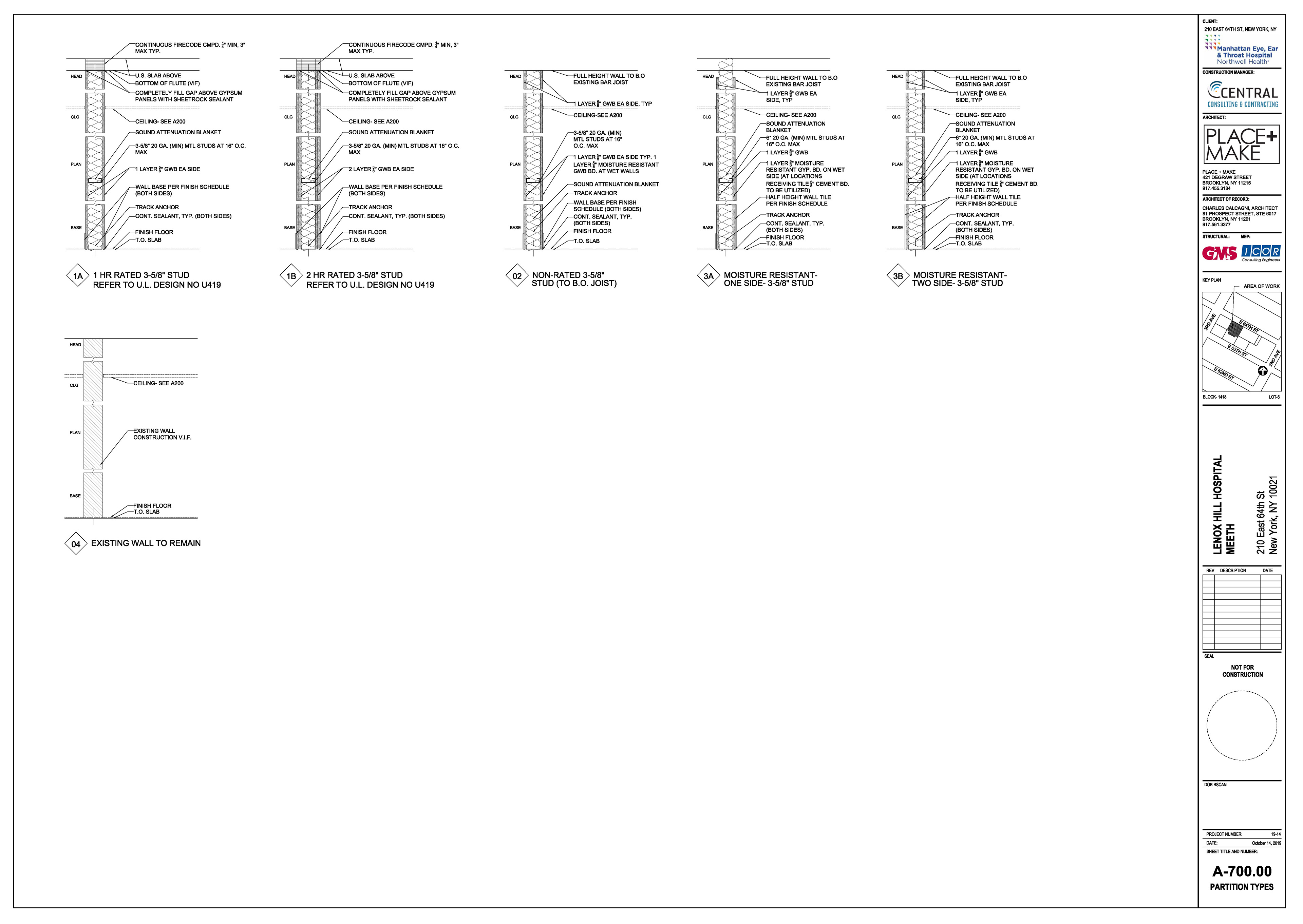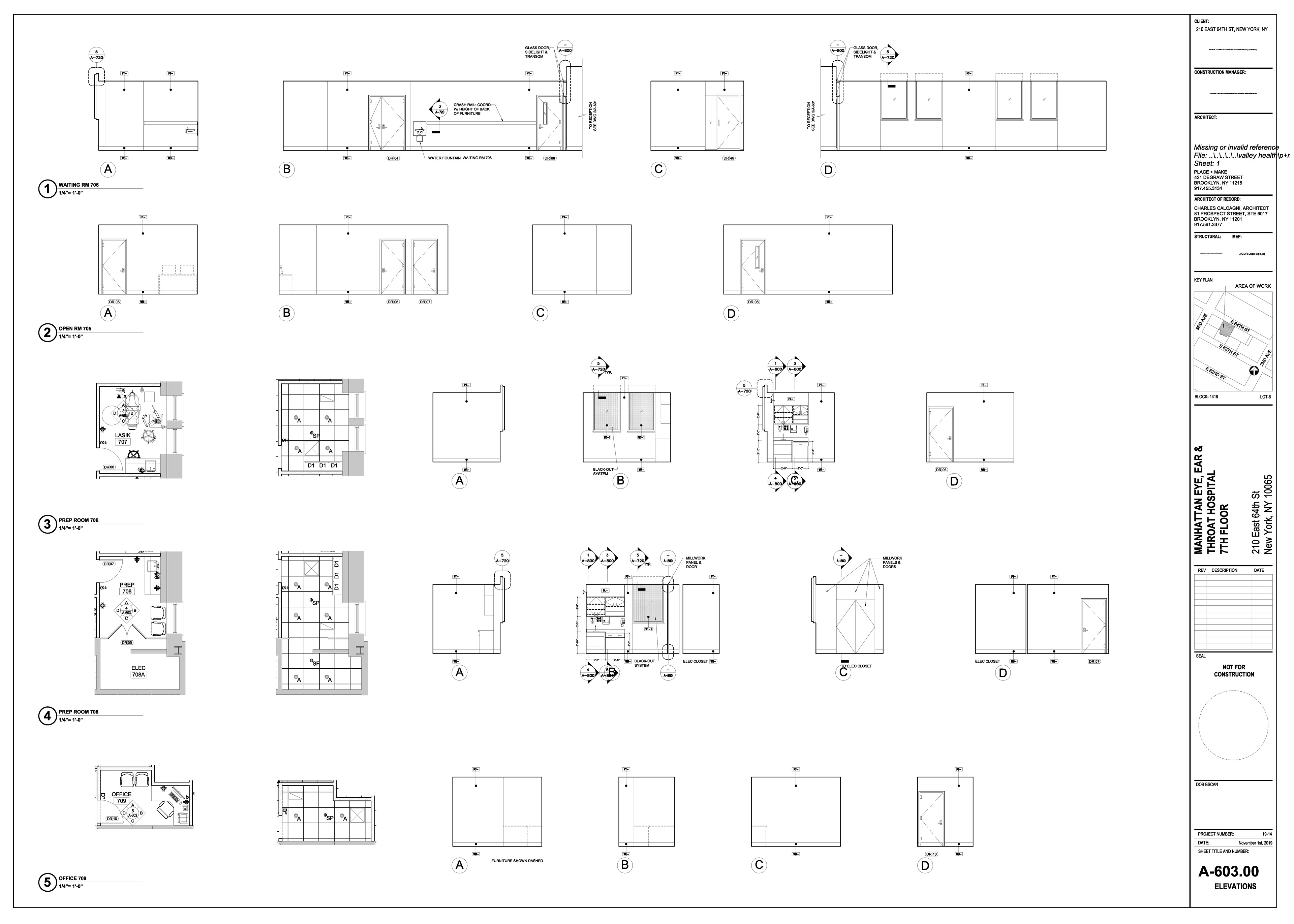 Manhattan Eye Ear and Throat facility in Manhattan. Scope of work included surveying, permit filing set, construction set, mill-work drawings, equipment coordination.