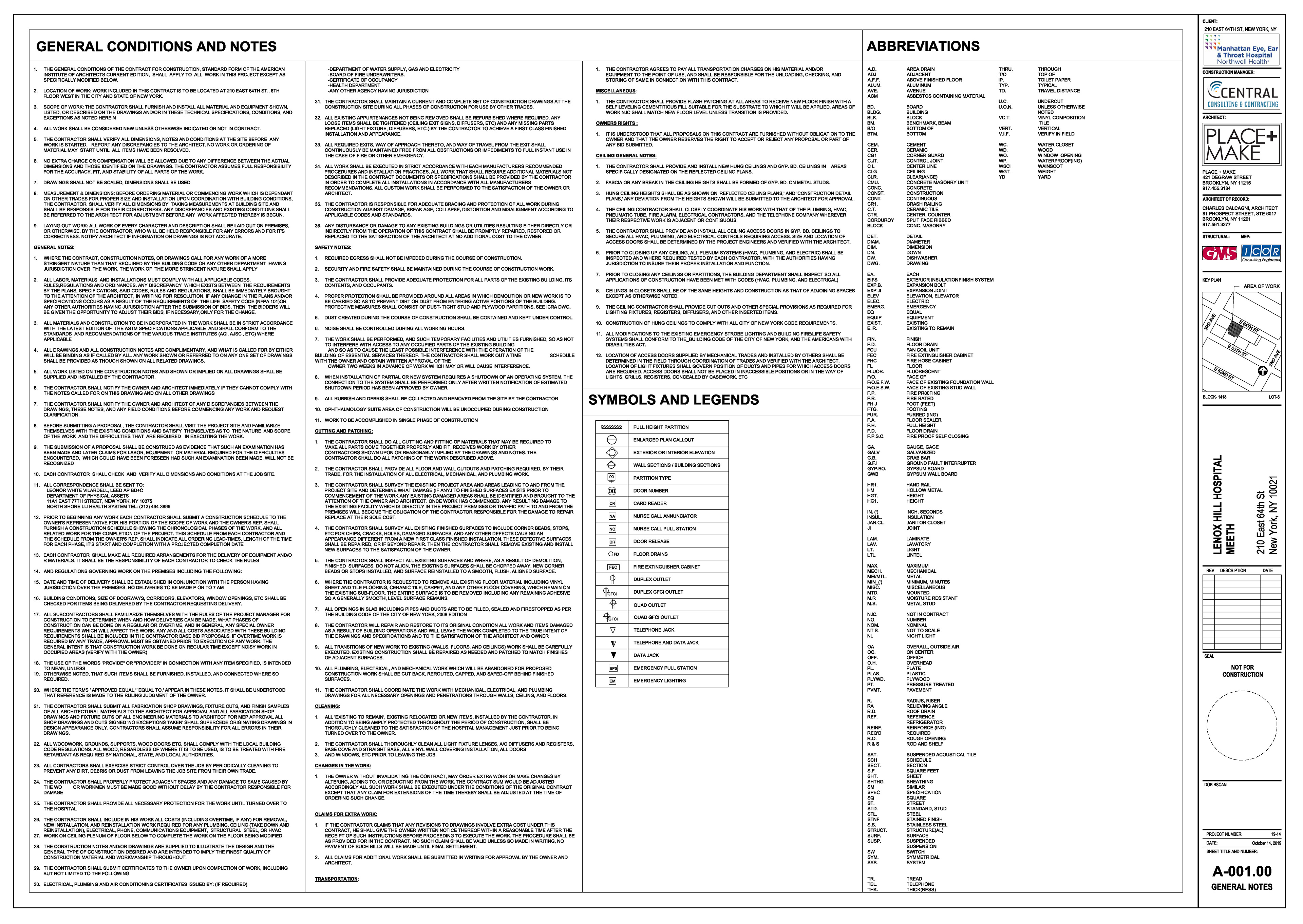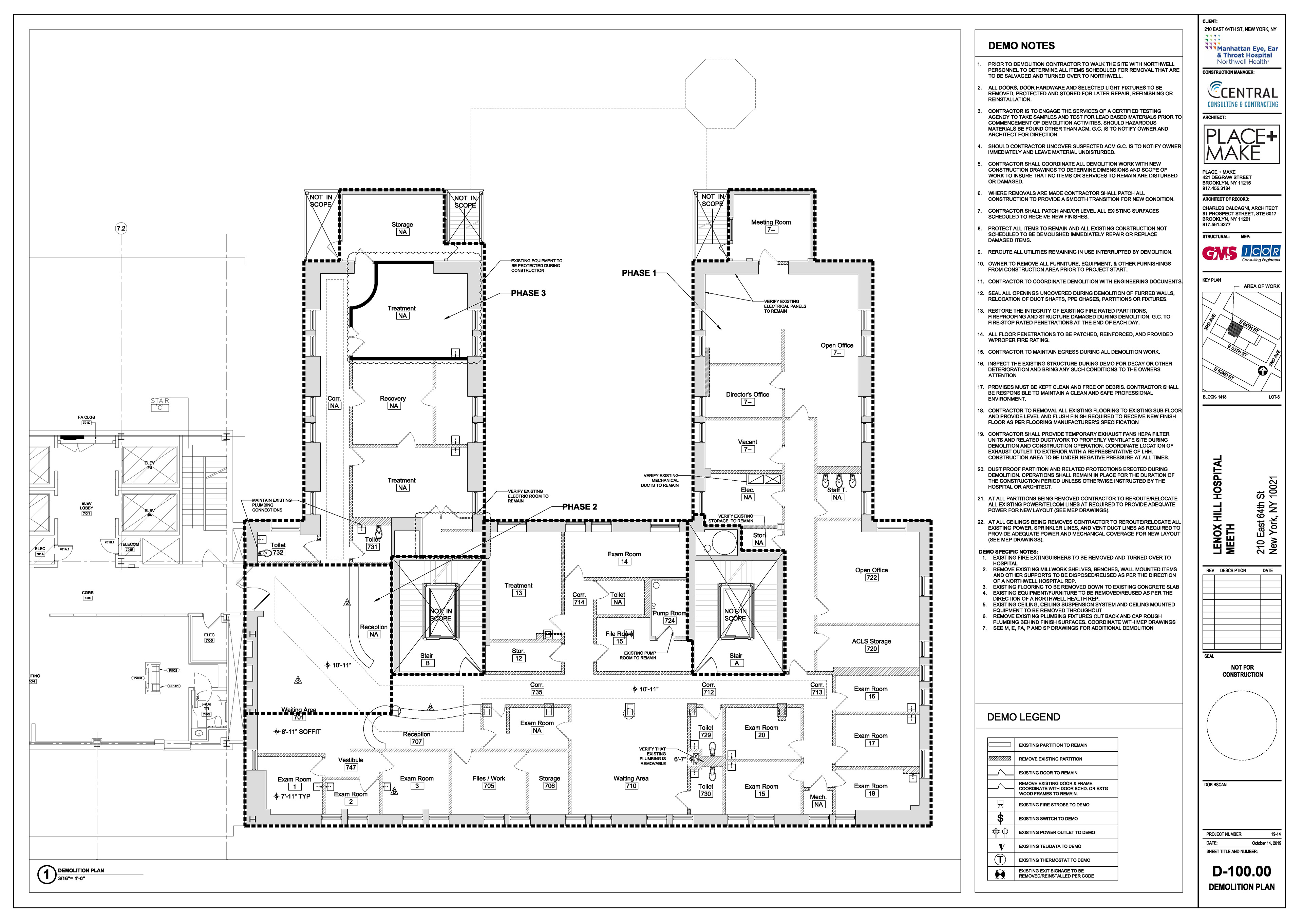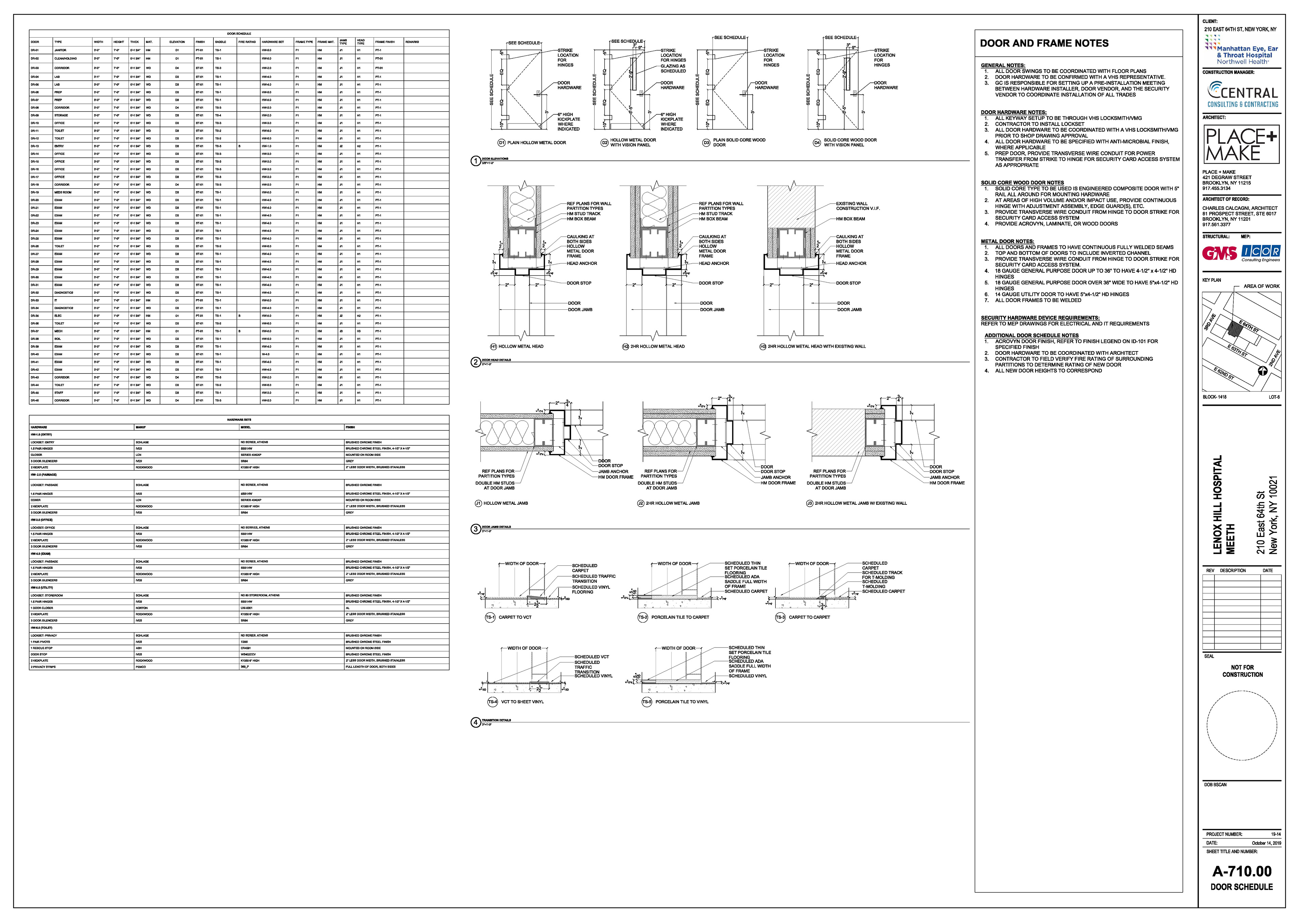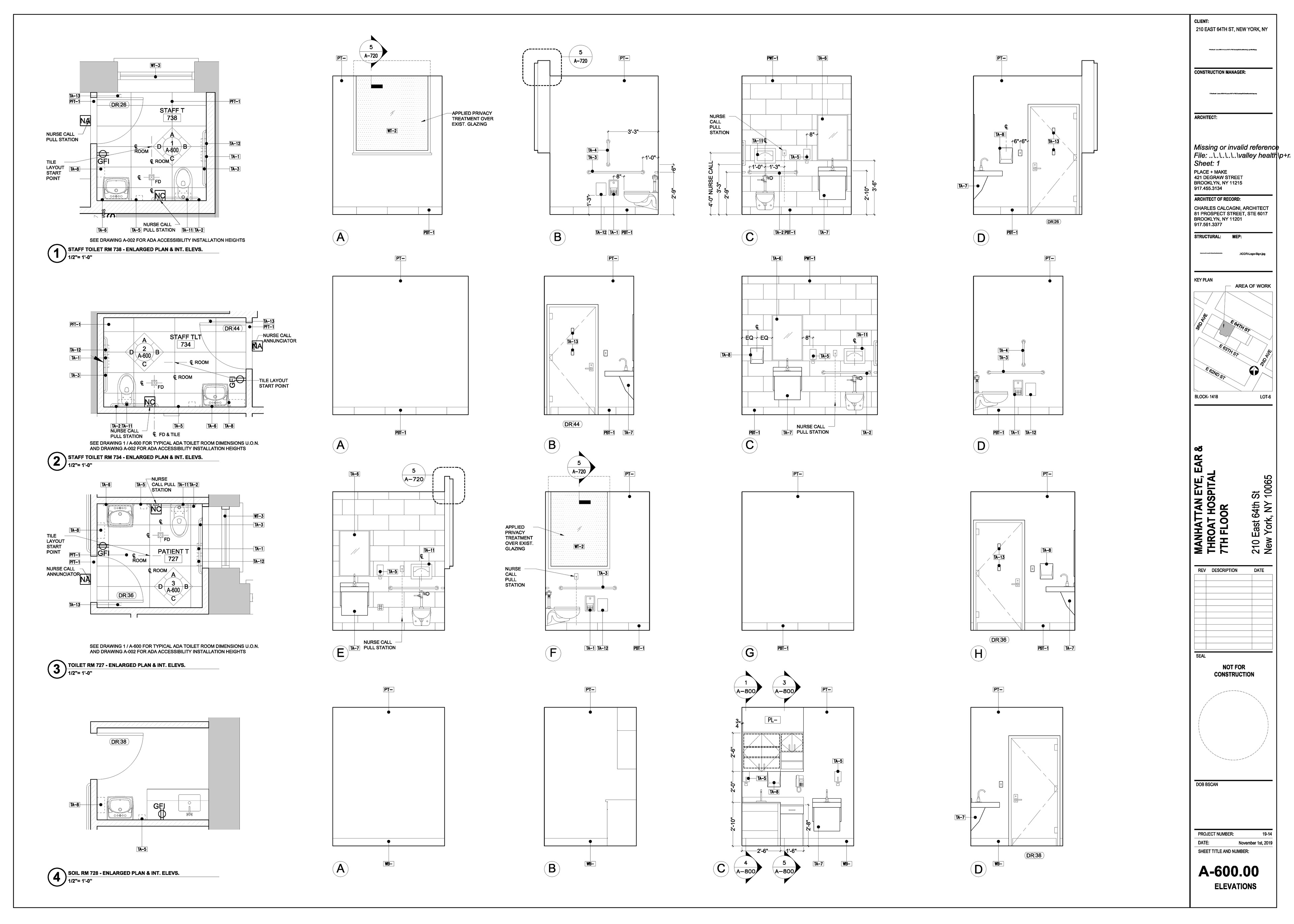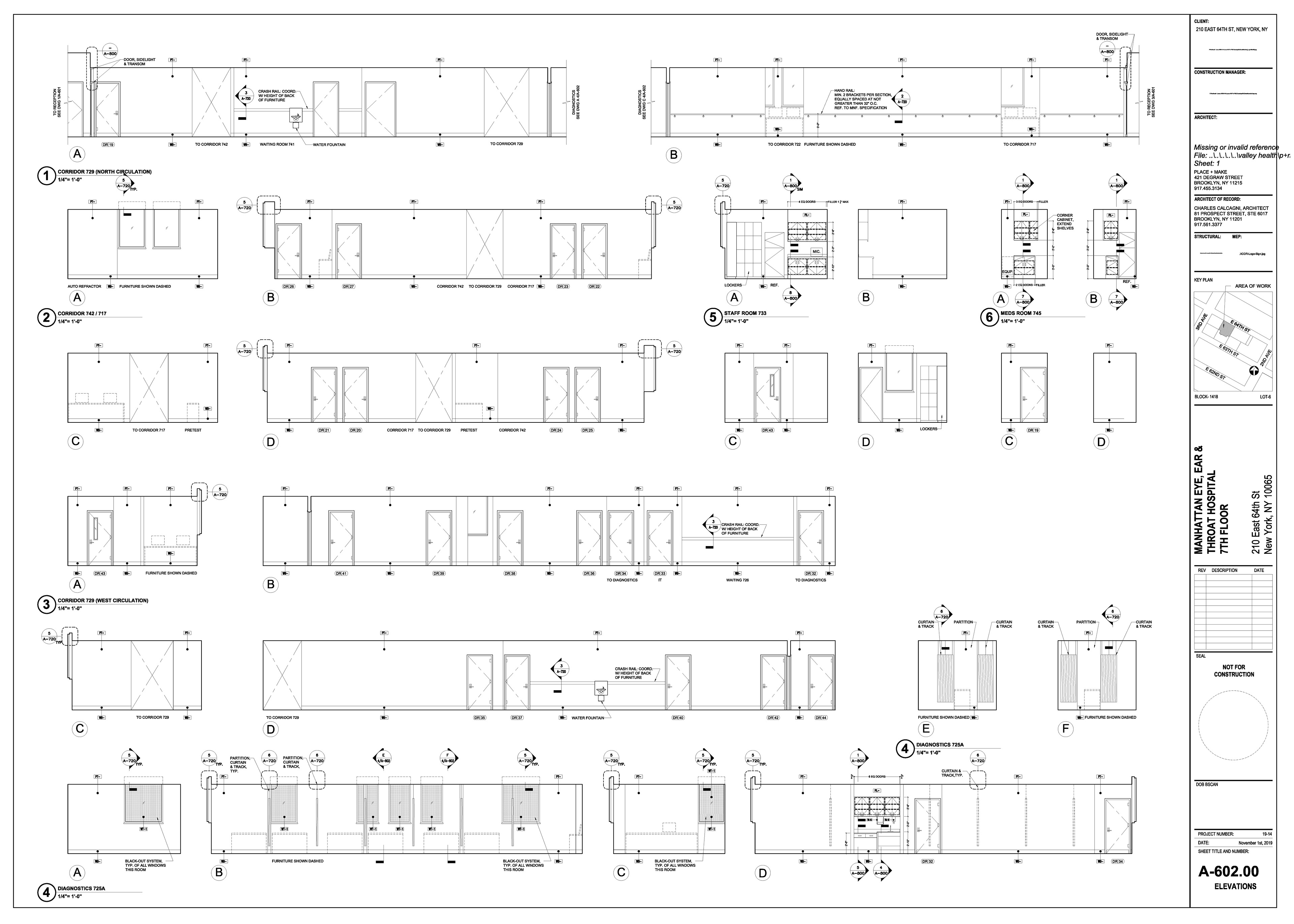 Manhattan Eye Ear and Throat facility in Manhattan. Scope of work included surveying, permit filing set, construction set, mill-work drawings, equipment coordination.